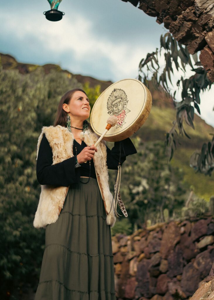 I initiate women into the shamanic arts through drum, voice, and embodied leadership not to give you an identity, but to strip away everything that is no longer true and in alignment with your highest path.