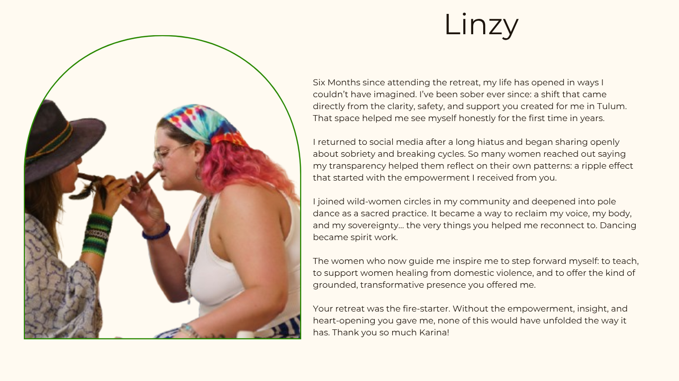 I hold containers where the body remembers what the mind cannot access and where women reclaim their authority without force, performance, or spiritual bypassing.